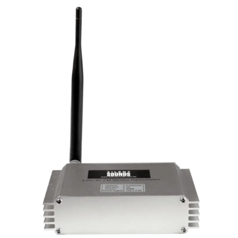 Stationary Transmitter (mains-powered): If you have access to power, this transmitter will produce the best sound quality and performance. Our stationary transmitter is designed to work with any audio playback device, including DJ equipment, smartphones, tablets, and laptops.